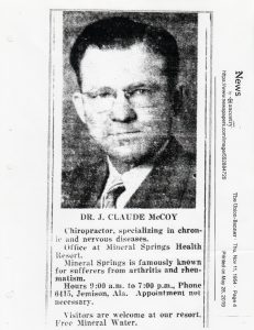 And so, in April 1954, Dr. J.C. McCoy opened his chiropractic office at Mineral Springs, specializing in the treatment of arthritis, neuritis, and all forms of rheumatism. The therapeutic mineral baths, a cornerstone of the springs’ legacy, awaited those who sought respite from their ailments. Visitors had the option to stay at the hotel, with daily and weekly rates allowing them to immerse themselves fully in the healing atmosphere.