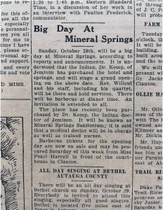 As the years rolled on, Mineral Springs continued to evolve, adapting to the changing times. In 1932, W.T. Hand proudly announced the birth of “Haven Green,” a health resort that offered the renowned water of Mineral Springs, highly recommended for ailments such as Bright’s Disease and kidney troubles. People flocked to experience the healing properties of the water, paying a mere dollar per day, including board.