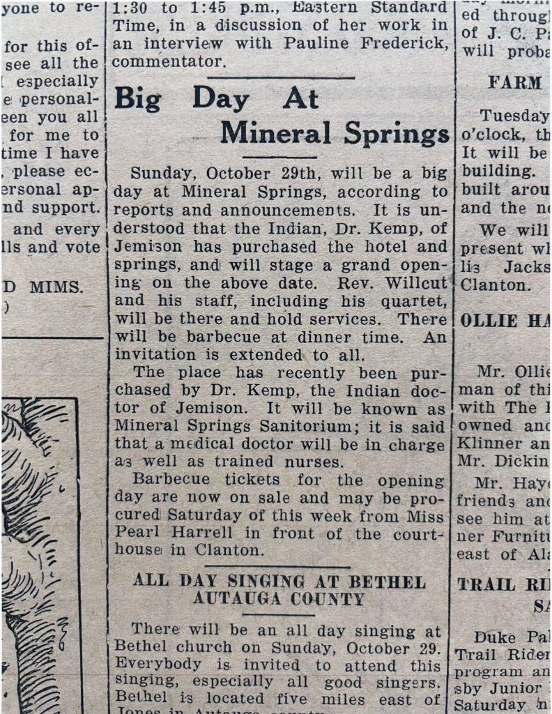 Dr. Kemp’s ventures expanded further when he acquired Mineral Springs Sanitarium, an old resort boasting 99.9% pure mineral rich spring water. The Sanitarium underwent a transformation, adding 42 new rooms, 10 cozy cabins, and a refreshing swimming pool. The spring itself, a testament to nature’s abundance, was encased in concrete, forming a graceful octagon-shaped structure. The advent of electricity, courtesy of Alabama Power, brought a touch of modernity to this oasis of wellness.